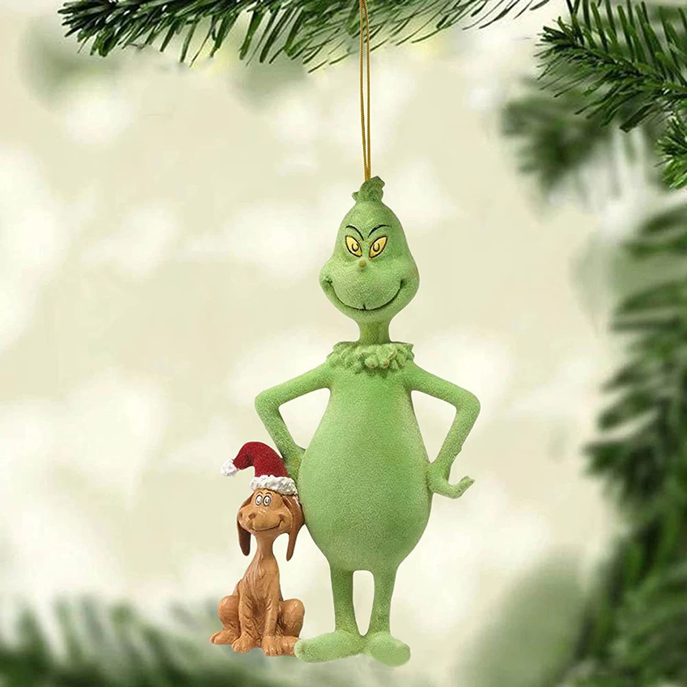 18Pcs 2D Acrylic Cute Green Monsters Christmas Tree Pendants Christmas Cartoon Ornaments Christmas Party Supplies