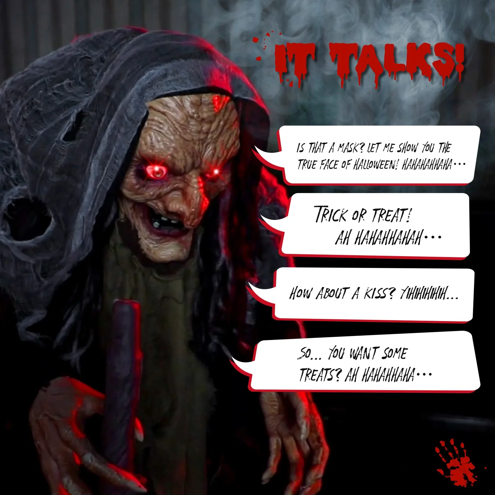 5.3FT Halloween Outdoor Spooky Decoration Talking Witch with Cane Glowing Eyes
