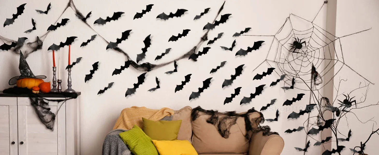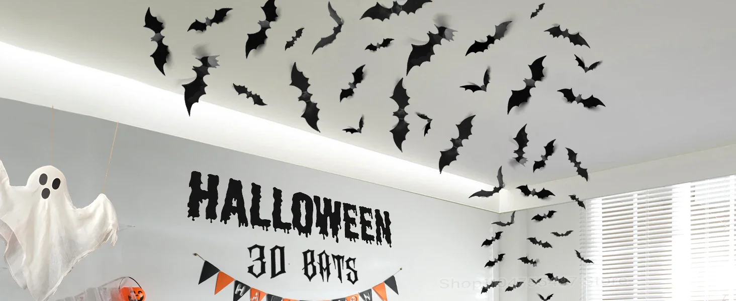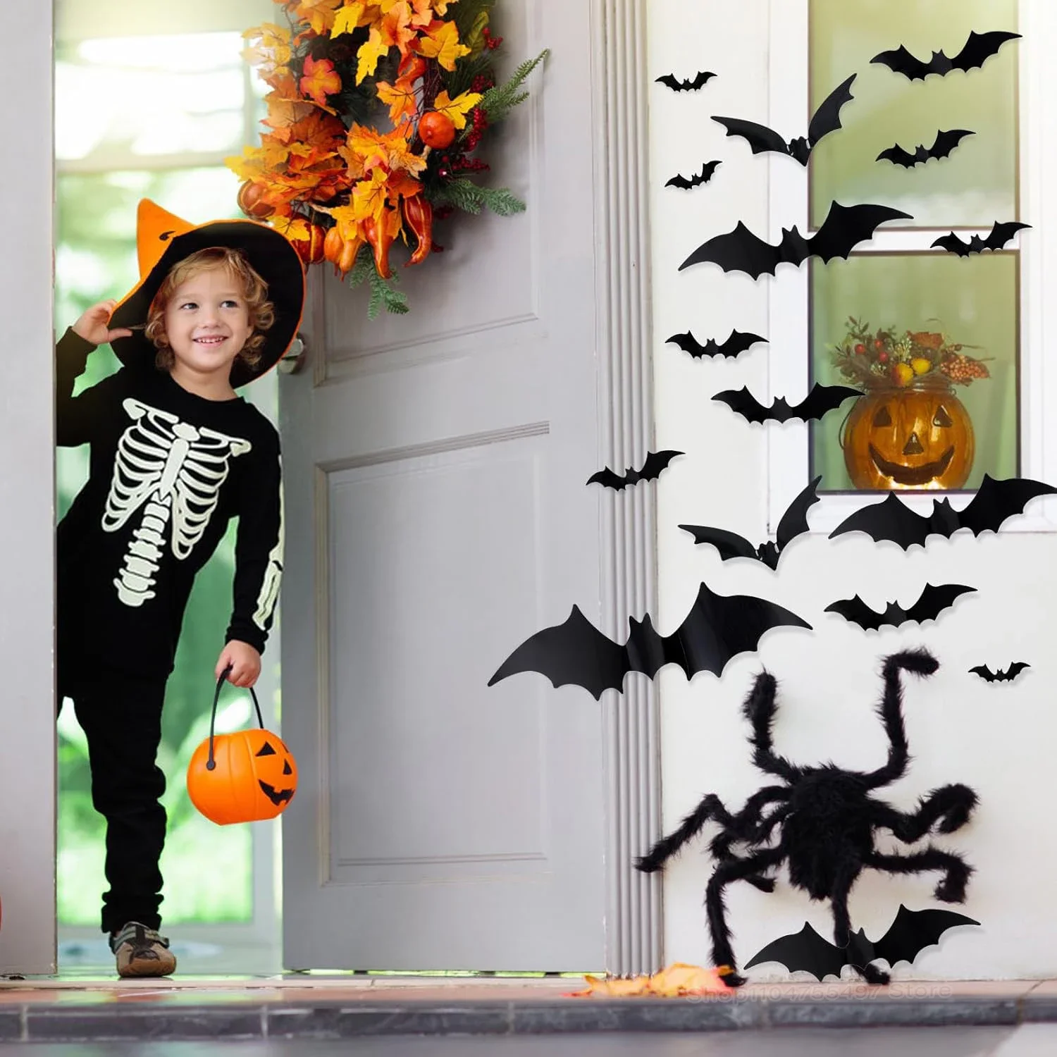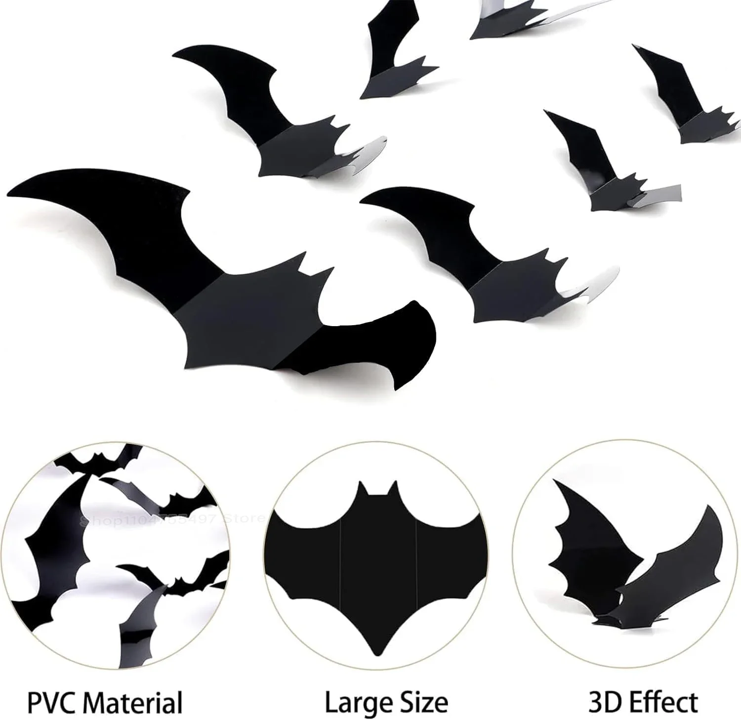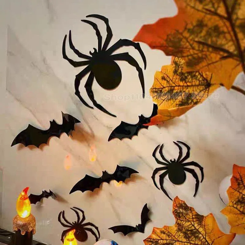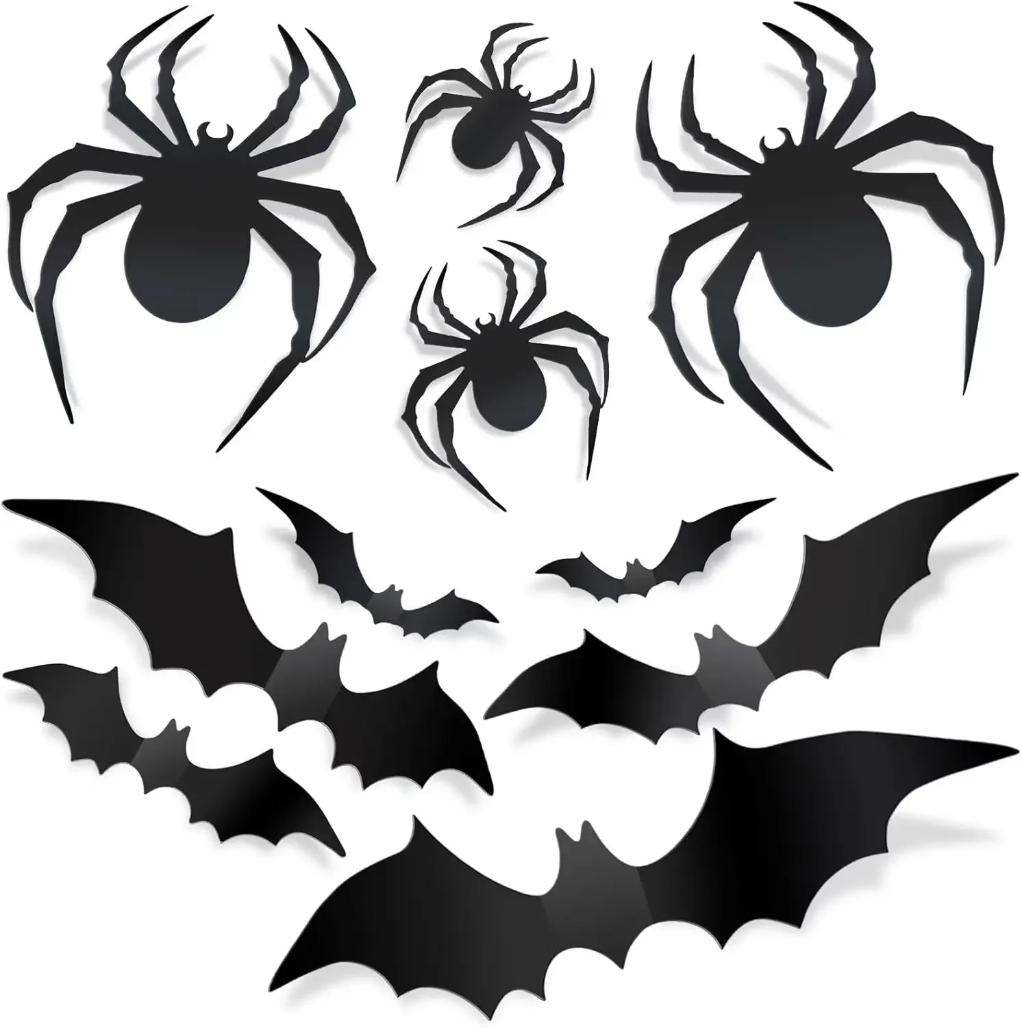 Black Horror Spider Wall Stick Halloween 3D Bat Sticker Emulation Plastic Sheet Festival Party Home Courtyard DIY Decoration