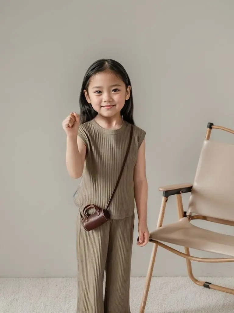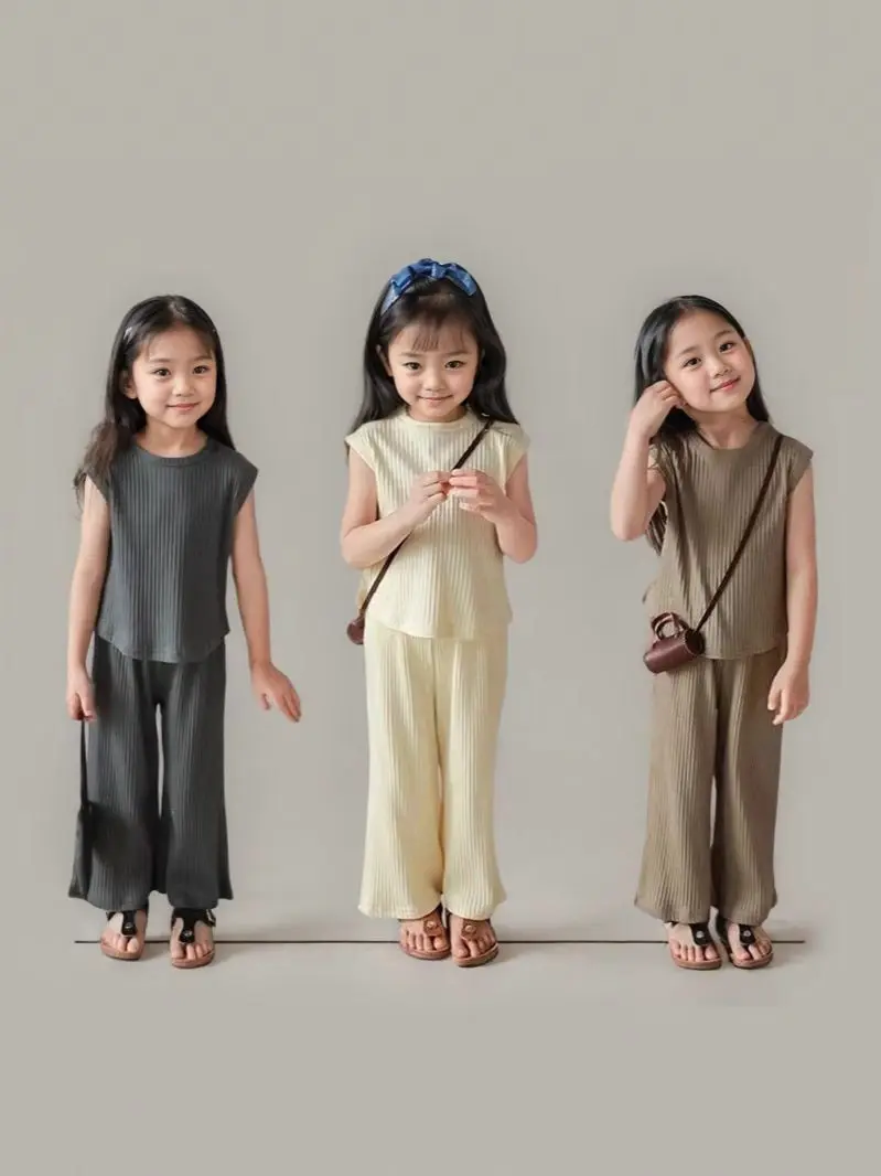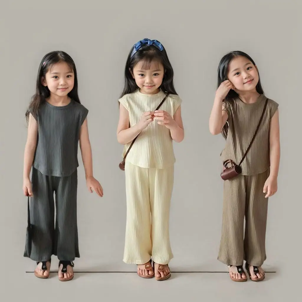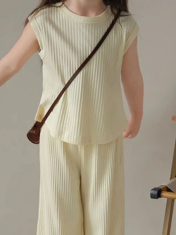 Children Clothing Summer New Girls Ice Silk Set Girls Summer Loose Fitting Sleeveless Vest Top Pants Two-Piece Set Children Sets
