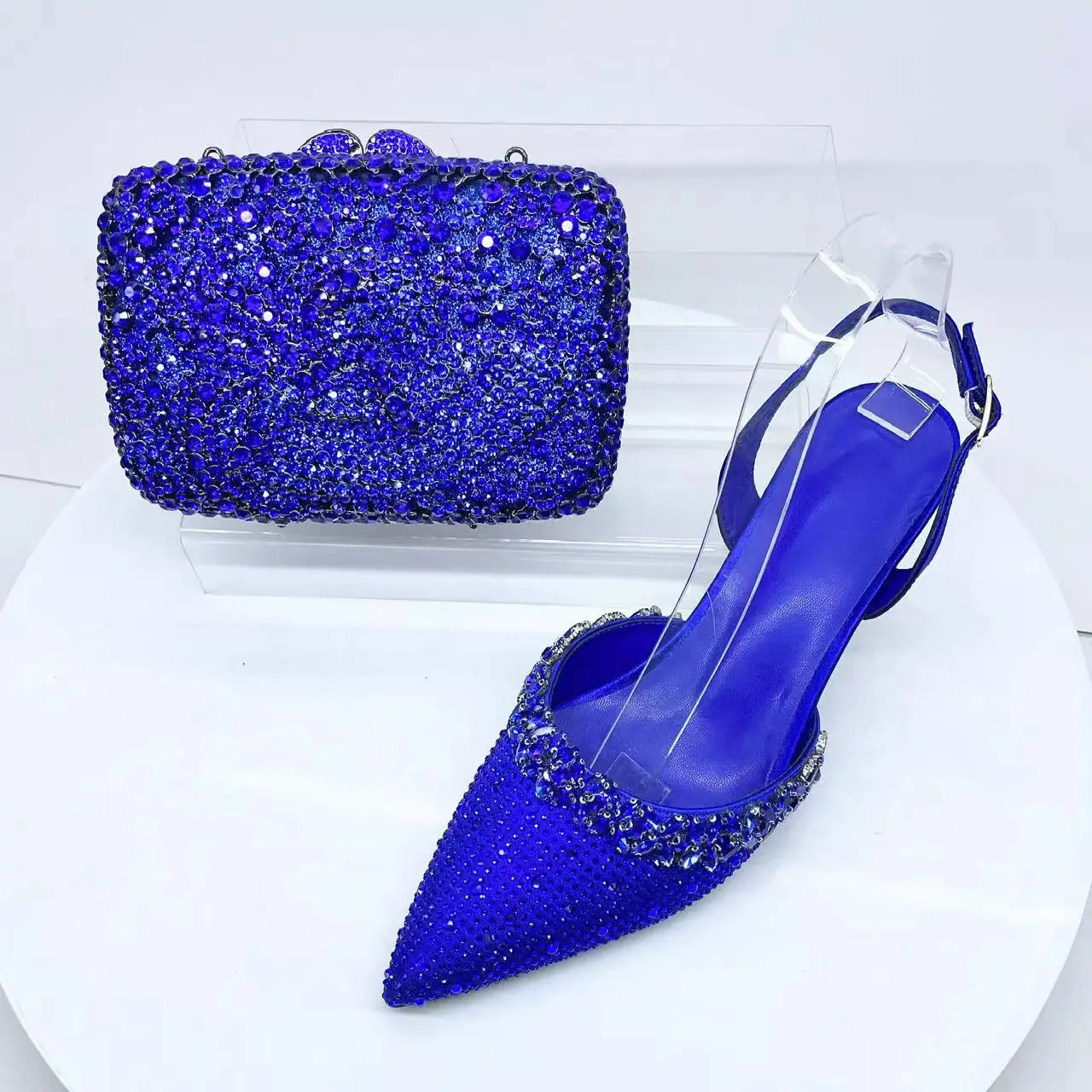 INSIGHTLINK Blue High Heels sandals and Bag Women Gems Dress Shoes Wedding stiletto Sandals Lady Bride high-heeled Stone Shoes