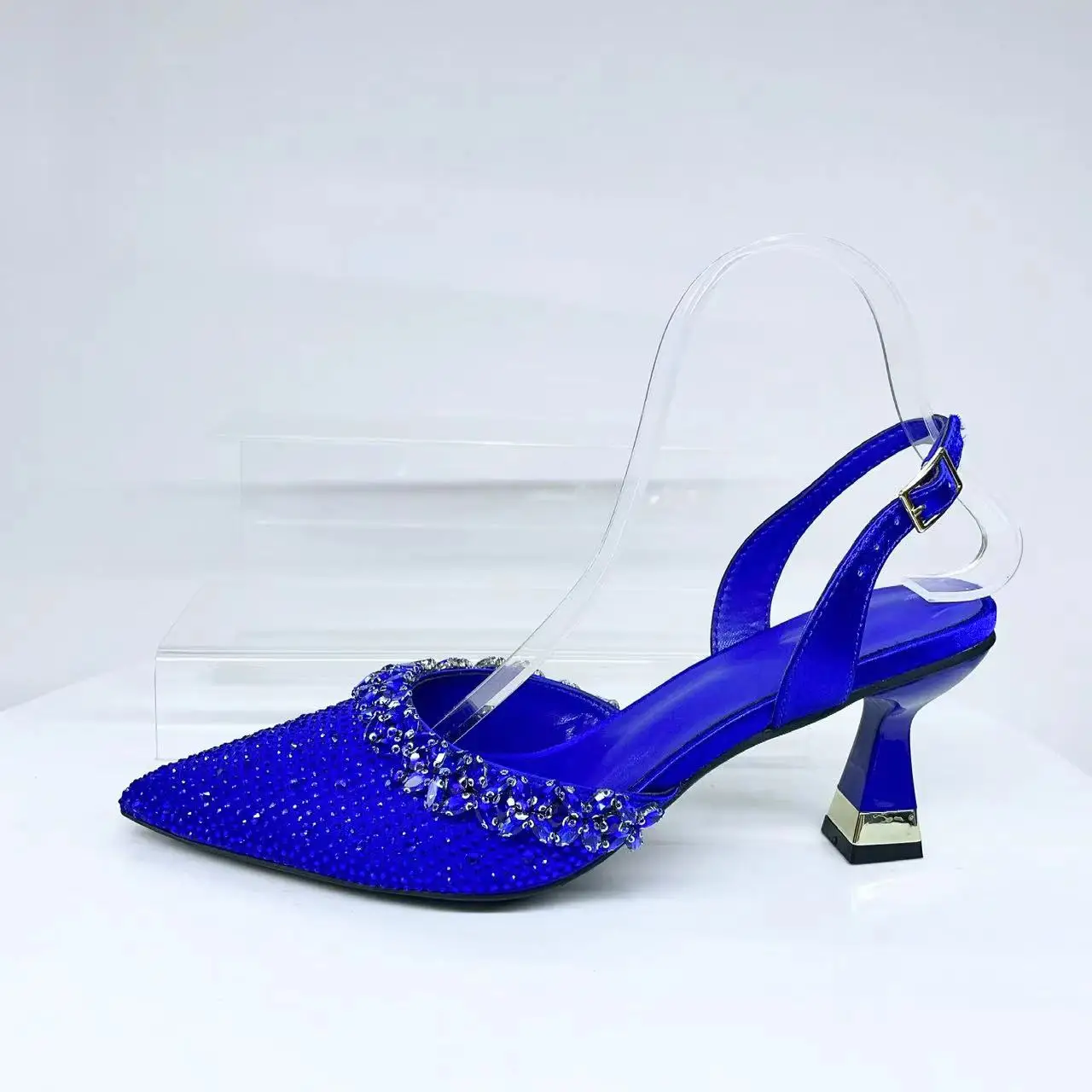 INSIGHTLINK Blue High Heels sandals and Bag Women Gems Dress Shoes Wedding stiletto Sandals Lady Bride high-heeled Stone Shoes