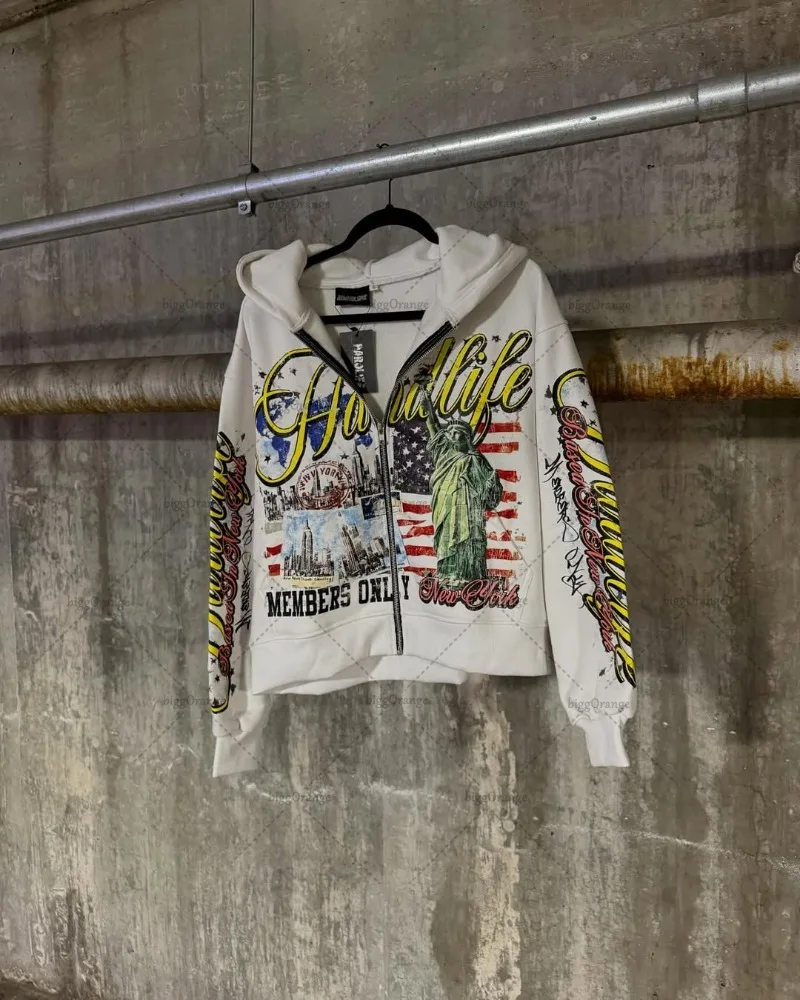 New Hip-hop Trendy Y2K Streetwear American Retro Letter Print Oversized Sweatshirt Men Harajuku Colorful Casual Hoodie Women