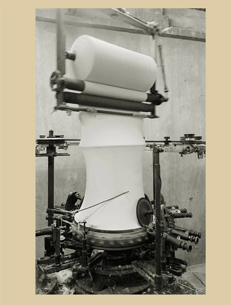 – Knitted on a vintage Tompkins Upright Rotary Knitting Machine, offering a subtly textured fabric that breathes well and feels cool and comfortable in the summer