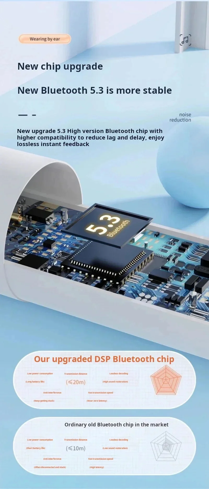 New upgrade 5.3 High version Bluetooth chip with higher compatibility to reduce lag and delay, enjoy lossless instant feedback